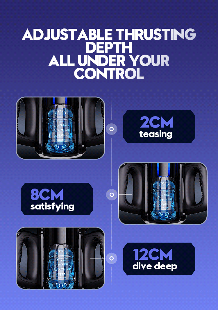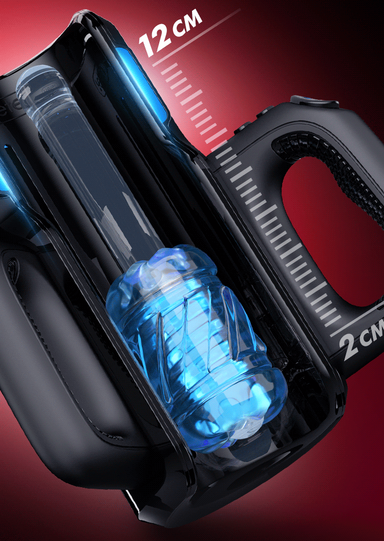 Extended piston travel of up to 12 cm for a customizable experience, taking in the full length for deep and shallow pleasure.